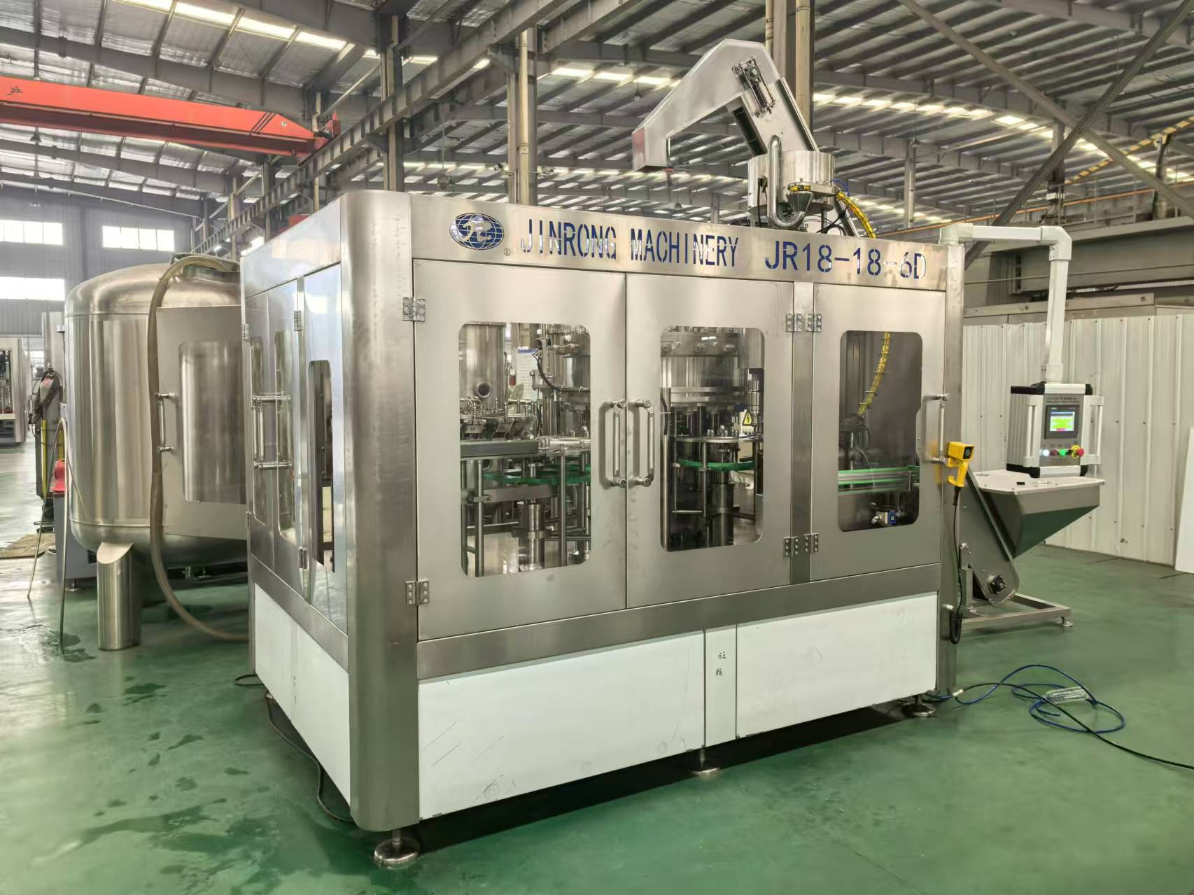 金榮飲料機械廠家制造供應的全套飲料生產線、果汁生產線、碳酸飲料生產線、小瓶礦泉水灌裝設備、大瓶水生產線、桶裝水生產線、純凈水灌裝機設備、瓶裝礦泉水灌裝生產線、易拉罐啤酒灌裝機等系列產品主要運用在純凈水,礦泉水,果汁,茶,熱灌裝飲料,功能飲料,含汽飲料,碳酸飲料,啤酒等液體飲料灌裝生產。其供應的灌裝生產線可配套全自動吹瓶機、水處理設備、前處理設備、飲料殺菌設備、貼標機、包裝機等相關配套機械設備。金榮多年來的設備研發(fā)和制造經驗,讓金榮機械為飲料生產企業(yè)和水廠等提供了穩(wěn)定的全套灌裝生產線設備。